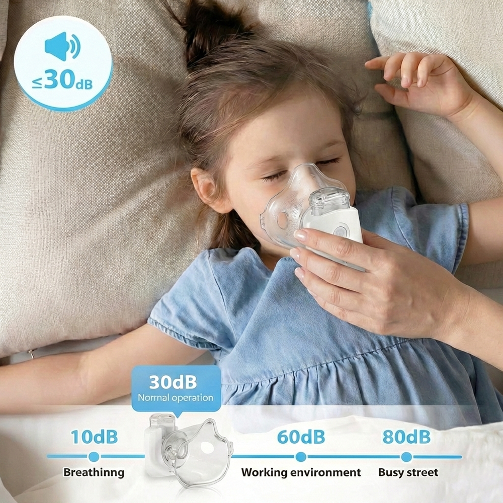 Powered by a high-precision German chip, this handheld ultrasonic nebulizer delivers stable, efficient mist output with only 30 dB of operating noise — quieter than a whisper.